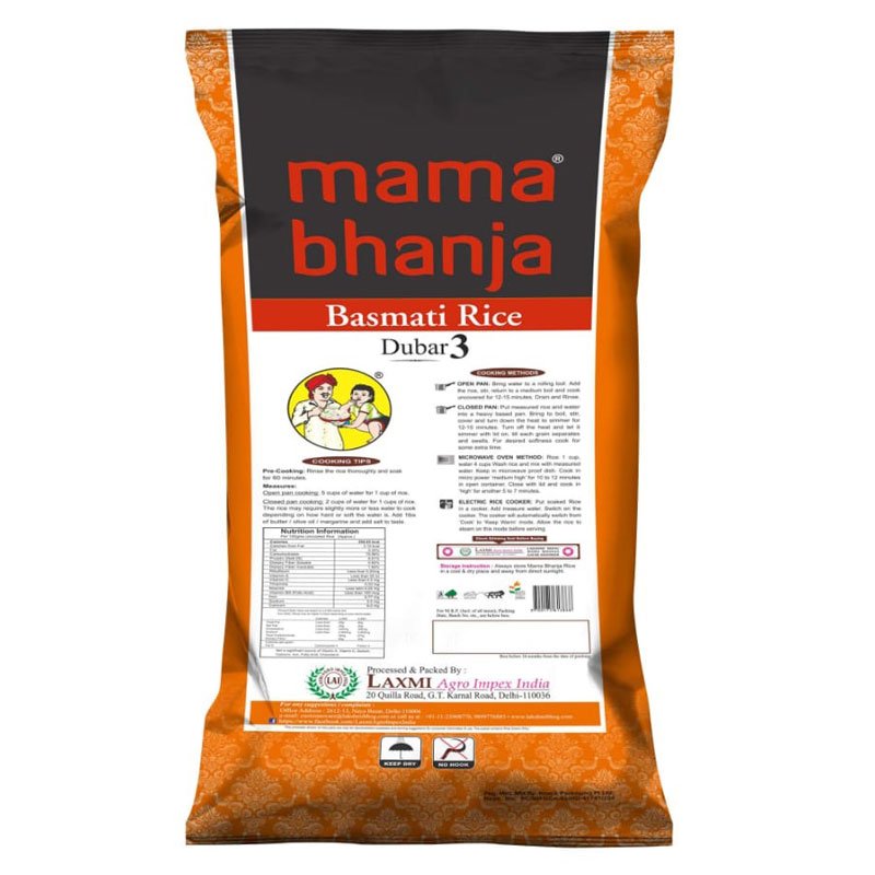 Mama Bhanja Dubar (3) Basmati Rice everyday rice that makes each meal memorable. It is ideal for people who like to include rice in their daily meal consumption. Aromatic, flavorful, and defined by its distinctly long and slender grains, Mama Bhanja Dubar (3) Basmati Rice turns every meal into comfort food.